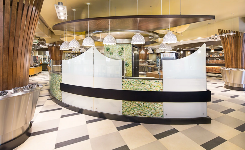 The design focuses on breaking down barriers between dining and serving areas, creating open spaces conducive to gathering, socializing, and studying. The dining environment is more than just a place to eat; it's a hub for culinary exploration and engagement, showcasing food and celebrating culinary energy.